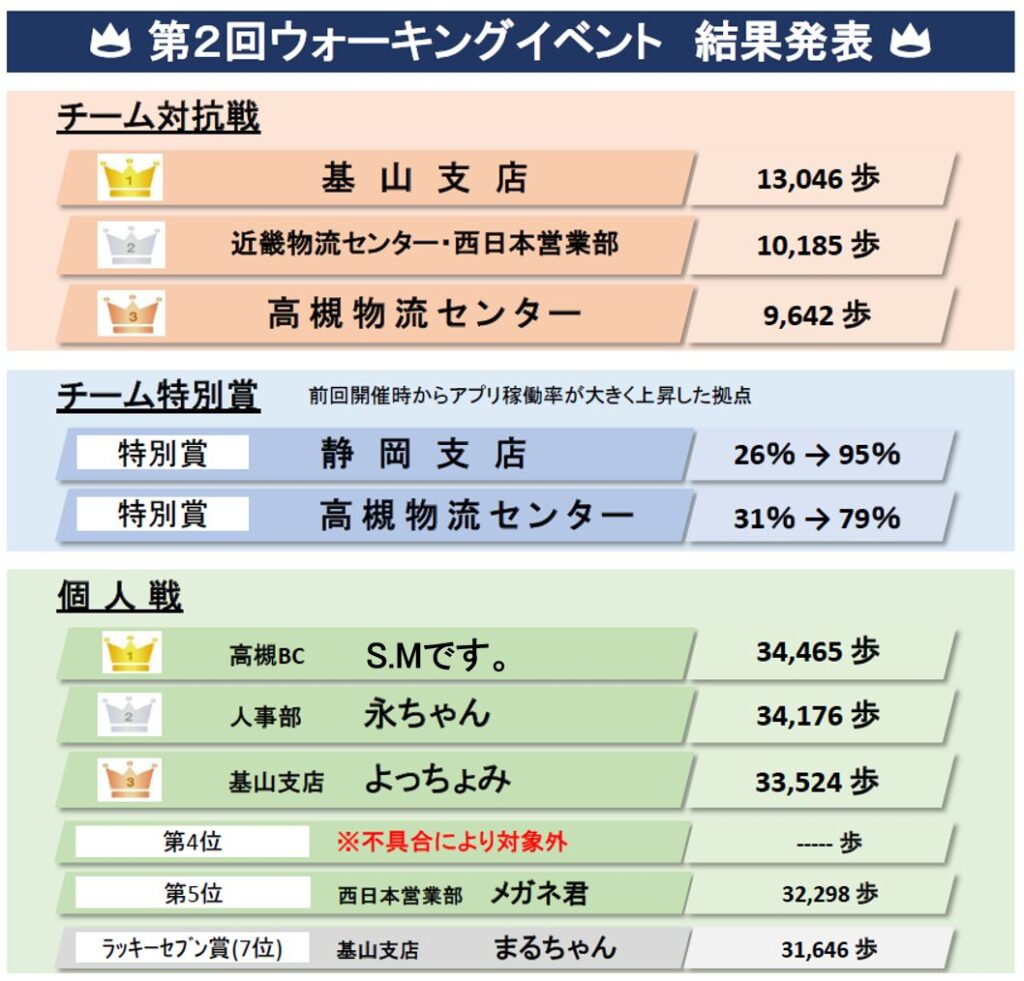 今後も様々な健康促進イベントを企画し、職場内の更なるコミュニケーション活性化、継続的な運動習慣の定着を目指してまいります!