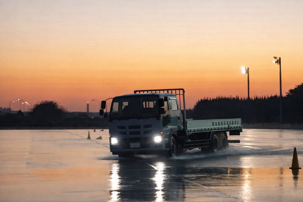 本研修では、夜間走行時の危険予測や視認性の違いの体験、悪条件下における車両挙動の確認など、実践的なプログラムが行われました。特に夜間研修では、ヘッドライトの照射範囲や死角の特性を実際に体感することで、昼間とは異なるリスクへの理解を深めました。また、緊急時における適切な操作方法や安全確認の重要性についても再認識する機会となりました。