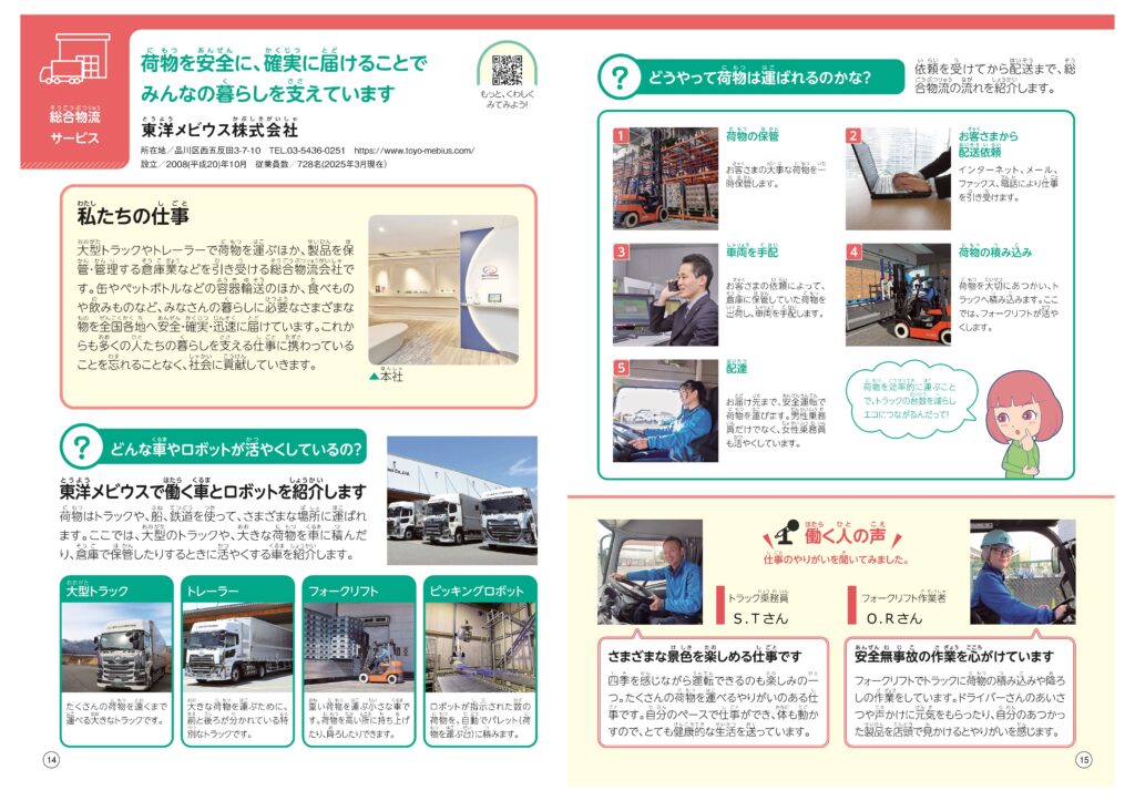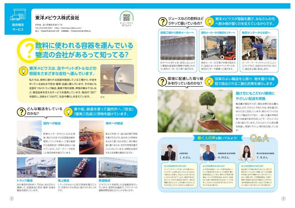 子供たちが今の自分や将来への思いを見つめたり、一歩を踏み込んで考えたりできるような誌面展開となっており、当社の事業紹介に加え、地元の子供たちに物流会社を身近に感じてもらいたいという思いから、掲載いただきました。